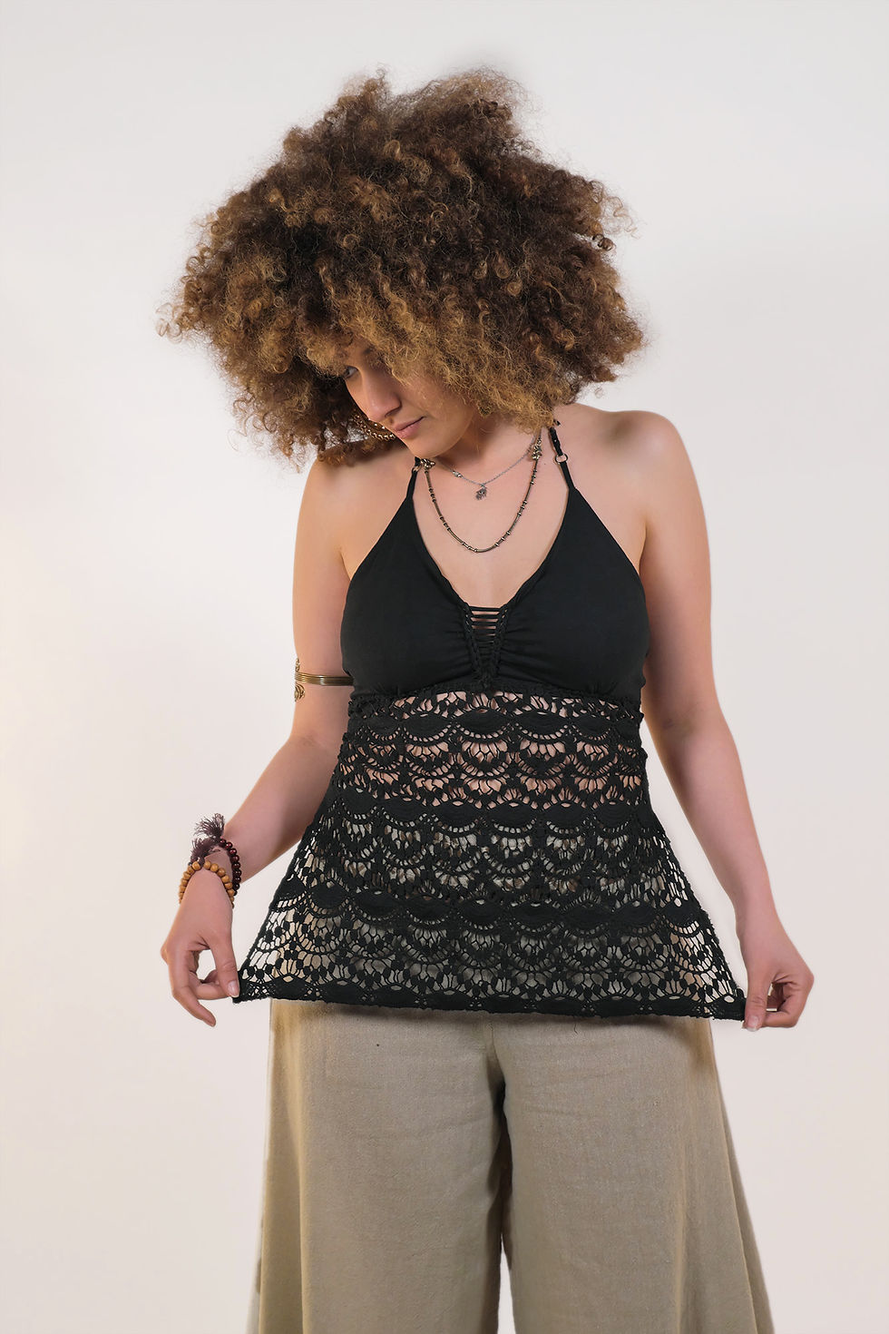 top pizzo lungo marrone chiaro